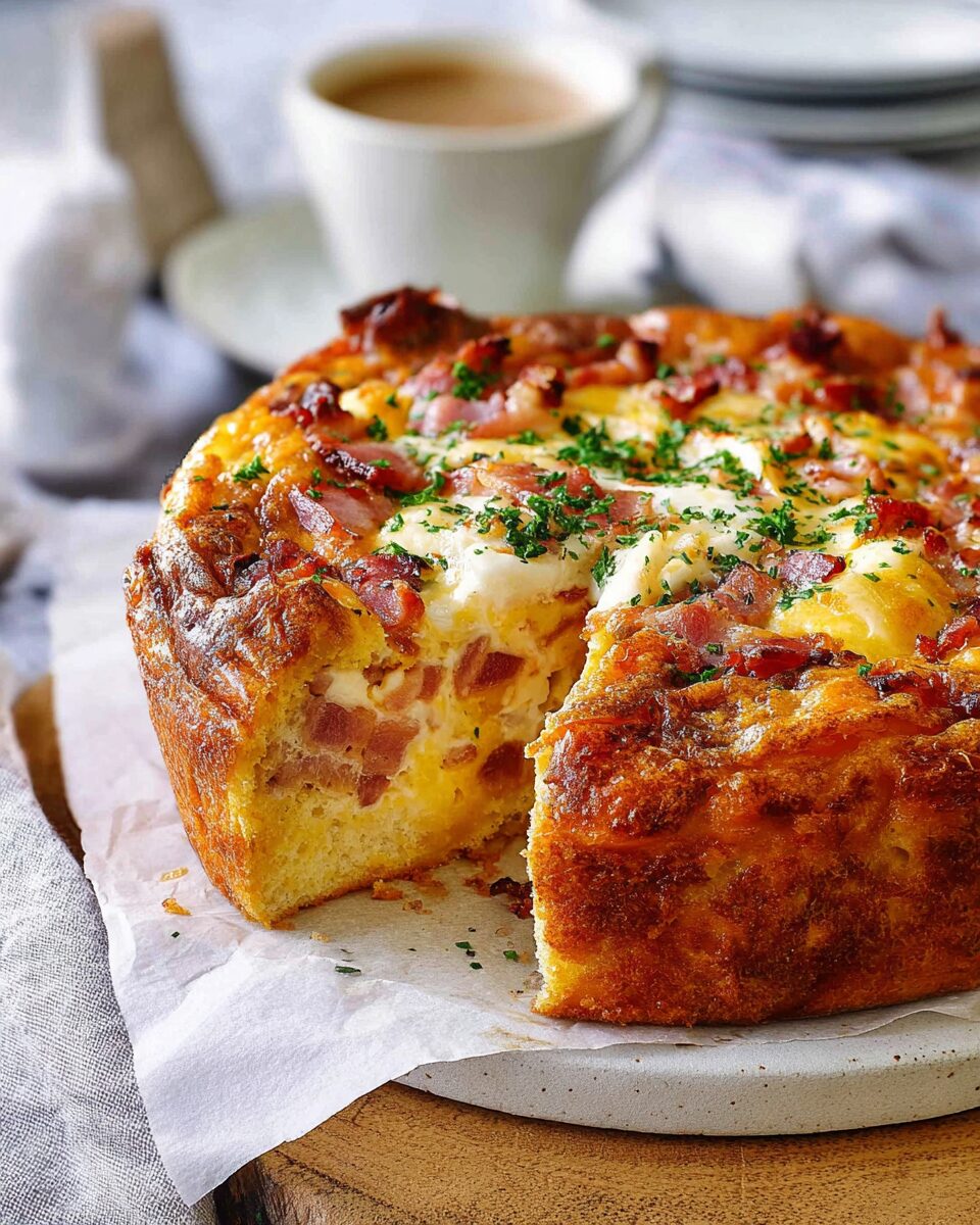 This Cheese & Bacon Strata Cake isn’t just a recipe — it’s an experience. It’s the kind of dish that brings people together around the breakfast table, where laughter fills the room and the aroma of bacon and cheese lingers long after the last bite.