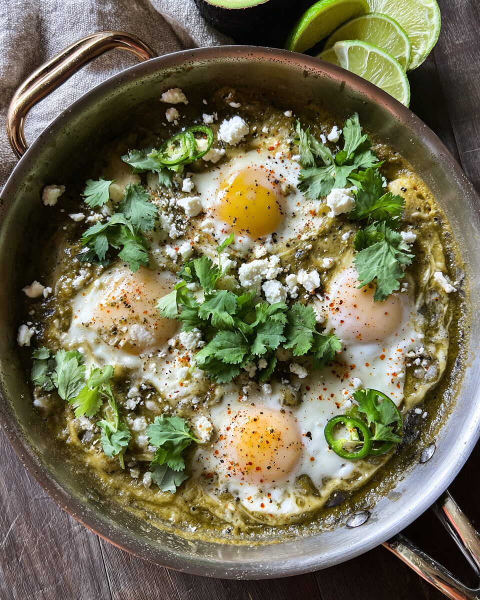 At its core, this dish is a celebration of simplicity. Eggs are poached directly in a fragrant, tangy salsa verde sauce — that gorgeous green salsa made from tomatillos, cilantro, and chili peppers — and finished with creamy avocado, a sprinkle of cheese, and a handful of fresh herbs. The result? A perfectly balanced meal that’s as stunning on the table as it is satisfying to eat.