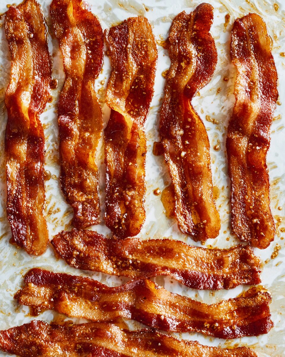 Crack black pepper over the bacon and add a sprinkle of thyme or rosemary before baking. It’s aromatic and elegant — ideal for brunch boards or sandwiches.