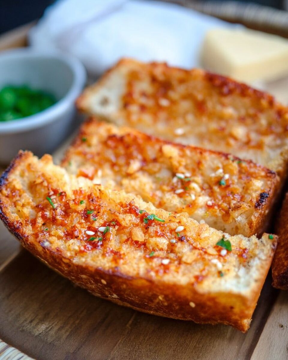 Top your Sriracha garlic bread with a sprinkle of sesame seeds and chopped green onions. Add a light drizzle of soy sauce or hoisin glaze for a fusion-style snack that pairs beautifully with noodles or stir-fry.