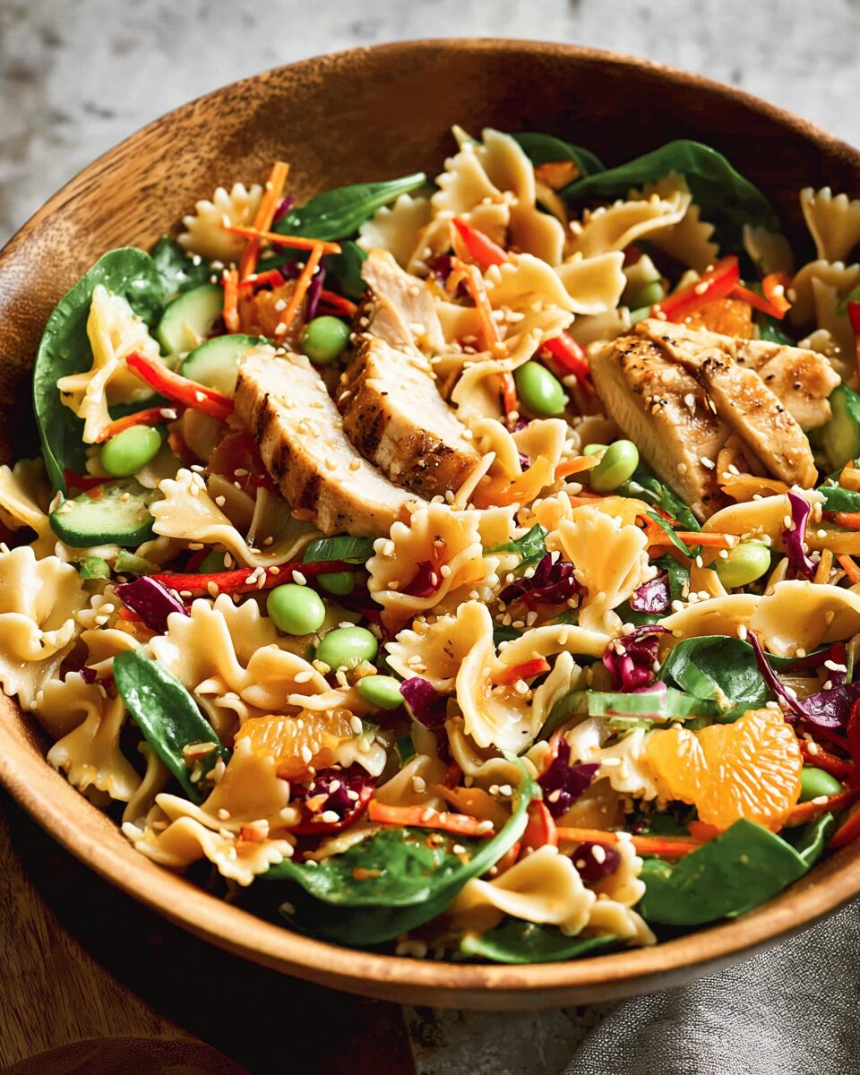 I first tried a version of this salad at a backyard barbecue years ago. A friend brought what looked like a typical pasta salad — until I took a bite. Instead of tangy vinaigrette or creamy mayo, the dressing had a deep umami flavor with hints of ginger and garlic. There were edamame, bell peppers, carrots, and bits of grilled chicken — a colorful, delicious surprise. I immediately asked for the recipe, and after a few tweaks over the years (and a few failed experiments with soy sauce proportions), this version was born.